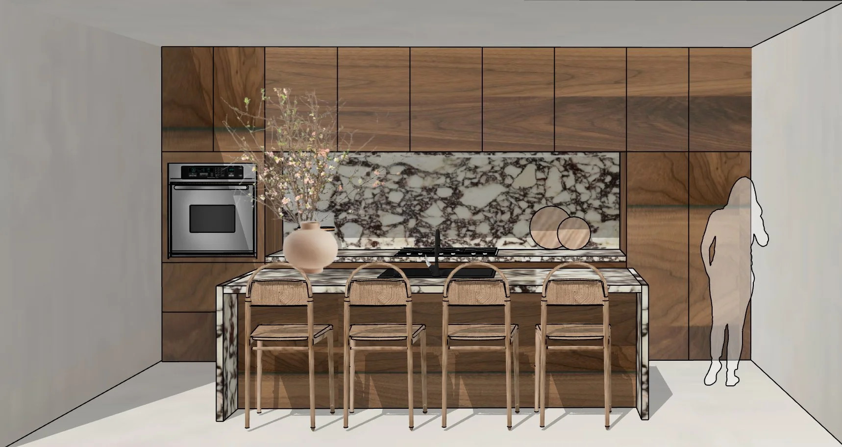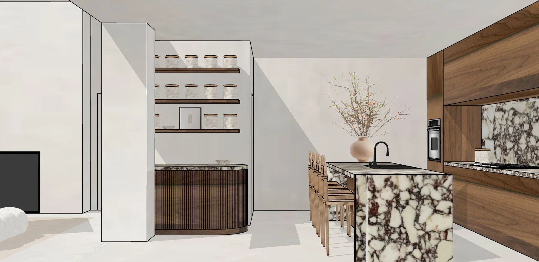 Scope. kitchen & bath remodel . remote design consultation . concept development . space planning . 3D renderings . finishes selection . floor plans . elevations . custom cabinetry