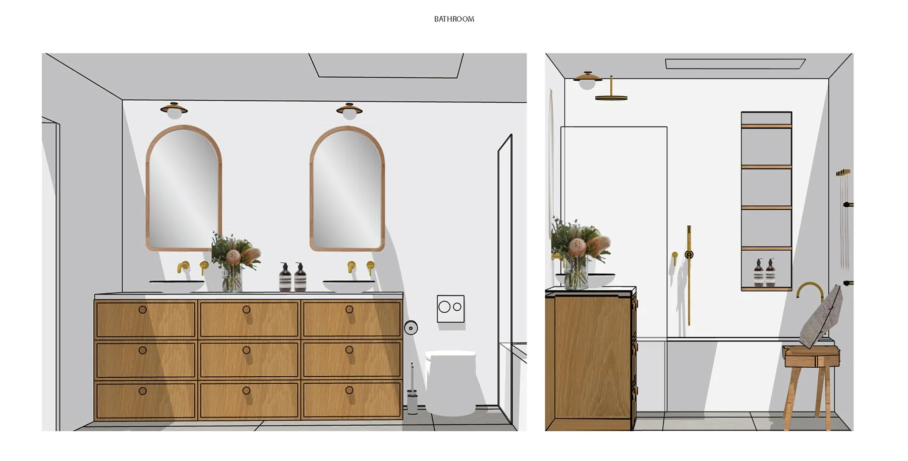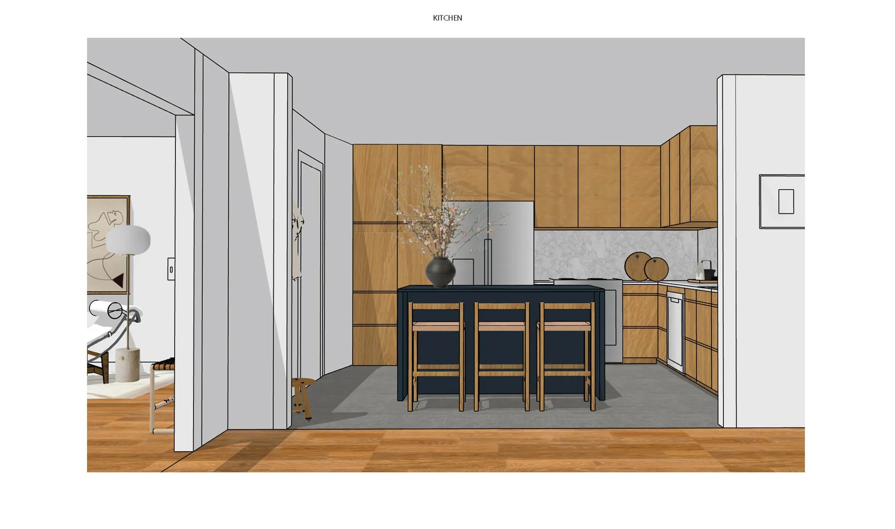Scope. 2 bedroom 2 bath . kitchen & bath remodel . remote full service interior design . concept development . space planning . 3D renderings . design boards . furniture selection . floor plans . elevations . interior styling