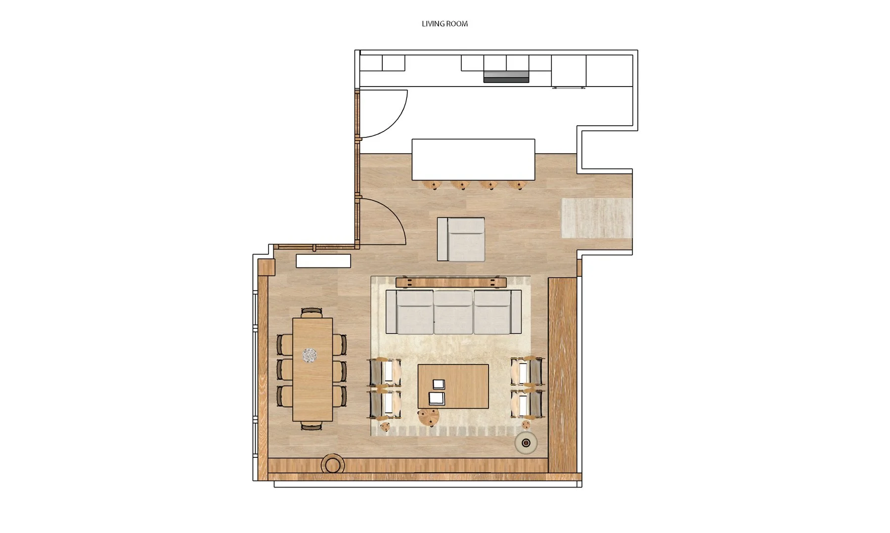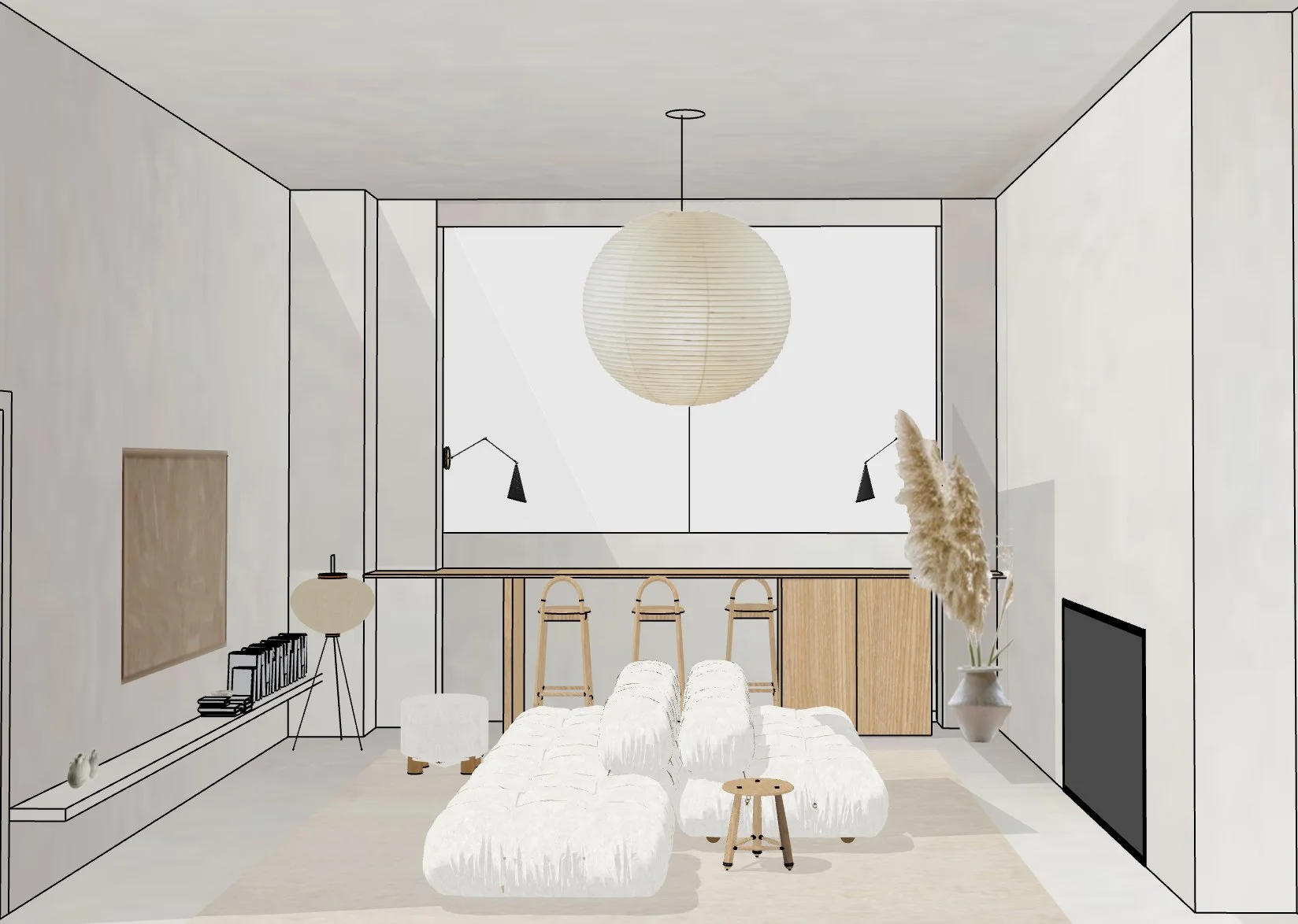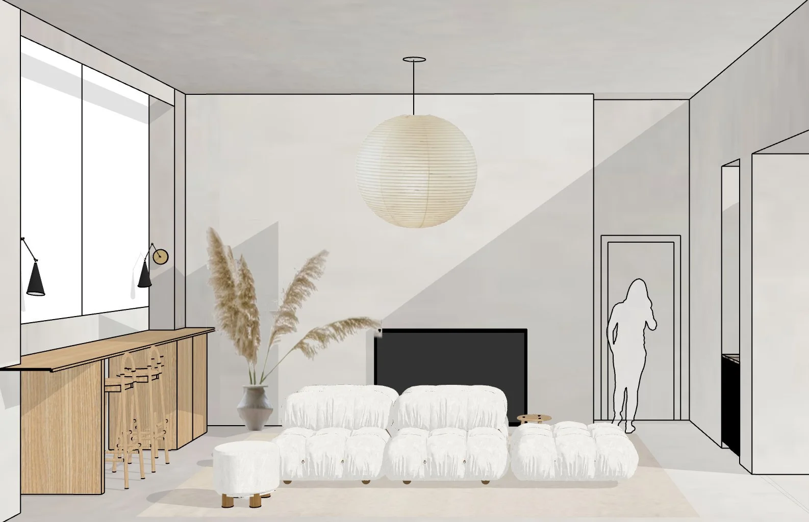 Scope. 2 bedroom 2 bath . remote full service interior design . concept development . space planning . 3D renderings . design boards . furniture selection . floor plans . elevations . interior styling